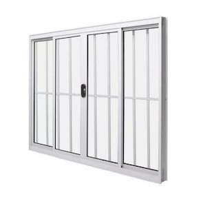Janela 100x150 4 Folhas Vidro c/Grade - Alumínio Branco - Linha 18 Modular Janela de correr COM GRADE com 2 folhas de vidro fixas e 2 folhas de vidro móveis (de correr). Fecho central. Já vem com vidro incluso e pronta para instalar. Não enferruja. De fabricação própria.