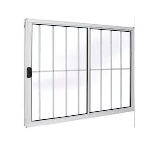 Janela 120x120 2 Folhas c/Grade - Alumínio Branco - Linha 18 Modular Janela de correr COM GRADE com 1 folha de vidro fixa e 1 folha de vidro móvel (de correr). Fecho na lateral. Já vem com vidro incluso e pronta para instalar. Não enferruja. De fabricação própria.