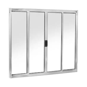 Janela 120x150 4 Folhas Vidro - Alumínio Brilhante - Linha 18 Modular Janela de correr com 2 folhas de vidro fixas e 2 folhas de vidro móveis (de correr). Fecho central. Já vem com vidro incluso e pronta para instalar. Não enferruja. De fabricação própria.