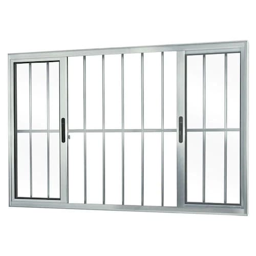 Janela 4 folhas 1,00x2,00 com grade no alumínio brilhante Imagem ilustrativa do produto