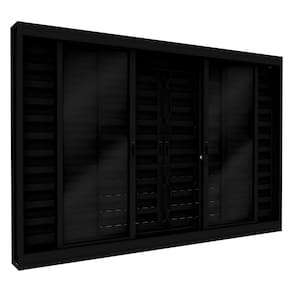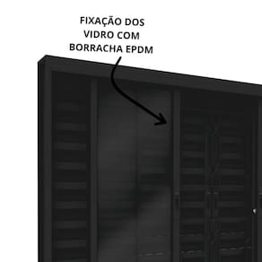 Com 6 folhas (2 fixas e 4 móveis), Seus vidros lisos são fixados com borracha EPDM, facilitando a troca em caso de necessidade.