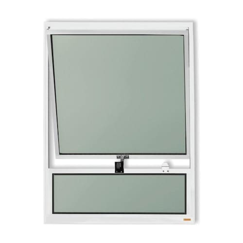 Janela Maxim -Ar Com Bandeira de Alumínio Linha Plus Pintura Eletrostática Branca Fecho tipo Braço articulado Escovas Vedadoras Hidrorrepelentes 1 Folha Fixa e 1 Folha Móvel Vidro Mini Boreal 4mm Altura 80 Cm Largura 60 Cm Requadro 3 Cm Garantia de 5 anos contra defeitos de fabricação