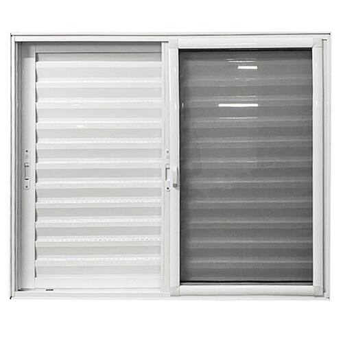 Janela de Alumínio Branco Veneziana 3 Folhas Com Tela Mosquiteira Linha 25