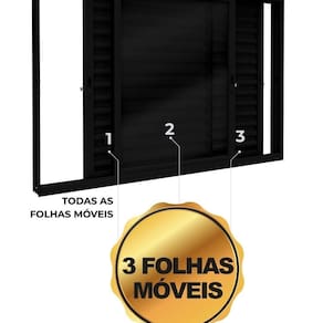 O modelo conta com 3 folhas móveis que deslizam suavemente, proporcionando ampla ventilação e controle da luminosidade.
