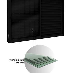 Produzida em alumínio com pintura eletrostática a pó, garante excelente resistência e acabamento uniforme. Possui 3 folhas — sendo 1 fixa e 2 móveis — que deslizam com leveza, além de grade integrada para maior segurança.