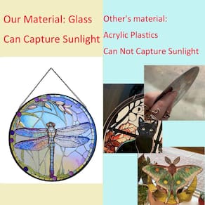 Características: Design requintado. Atraente e exclusivamente libélula projetada com um estilo de vitral, é a melhor escolha para decoração de casa. Pendurar com corrente Vem com uma corrente de metal para pendurar de forma rápida e fácil. Ideias de presente perfeitas Pode ser utilizado como presente de aniversário, Natal, presente de ano novo, etc; um presente para seus amigos, familiares, amantes, etc. Especificações: Material: vidro Tamanho: 20 x 20 cm. Peso: 350 g. Comprimento da corrente: 34 cm/13,4 polegadas Conteúdo da embalagem: 1 vitral de libélula para pendurar Aviso: 1. Medição manual, considere pequenos erros de tamanho. 2. Devido à diferença entre monitores, a cor real pode diferir ligeiramente da imagem. 3. Qualquer dúvida sobre nossos produtos, sinta-se à vontade para enviar o e-mail para nós via Amazon e responderemos dentro de 24 horas. - ?Material de vitral?A pendurar na janela é feita com vitrais de alta qualidade. Em comparação com materiais acrílicos, as cores são mais vibrantes, capazes de capturar a luz solar e mais econômicas, o padrão de libélula é requintado e bonito, é uma presença única no ornamento. - ?Tamanho do produto?O tamanho do vitral é de 20 x 20 cm. Equipado com uma corrente, o tamanho é de 34 cm. Você pode pendurá-lo em qualquer lugar que quiser, janela ou pátio. Este é um apanhador de sol muito bonito. - ?Fácil de usar?Com uma corrente e 2 pequenos anéis de conexão, você pode conectar a corrente à decoração pendurada na janela através deste 2 pequenos anéis de conexão. Então você pode pendurá-lo na posição que deseja decorar, é uma ótima decoração de casa. - ?Decoração interna e externa?O artesanato criativo adiciona um brilho colorido à sua vida. Pendurar na janela para decoração interna para quarto, banheiro, cozinha, café, escritório, sala de aula, varanda, etc. Também adorável decoração ao ar livre para jardim, pátio, carnaval e acampamento de trailer. - ?Presente requintado?Os apanhadores de sol de libélula para pendurar vitrais são um lindo presente para seus amigos, familiares, amantes, etc. Nossa decoração de parede de libélula seria um ótimo enfeite para sua casa. Adequada para presentes de Dia de Ação de Graças, presentes de Natal, presentes de Dia dos Namorados, presentes de Páscoa, presentes de Dia das Mães e outros presentes de feriado.