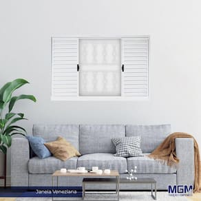 a Veneziana tem perfis da altura da folha móvel e mão de amigo tubulares (maior resistência nas operações de manuseio). Grade reforçada: barra chata de aço carbono com 3,35 mm de espessura. Fecho central em polipropileno. Na fixação de fecho central e suporte de rolamento utiliza-se parafusos para facilitar a manutenção periódica Largura do Batente: 7 Acompanha Batente: Acompanha Grade: Sim Acompanha Guarnição: Não Acompanha Manual de Instalação: Sim Altura: 100 Ambiente Principal: Quarto Certificado: Produto qualificado mediante a norma técnica ABNT NBR 10821 Controle Remoto: Não Cor: Branco Cor do Batente: Cor do Produto: Branco Elétrica: Escala de Brilho: Epóx branco Espessura: 7 Espessura do Vidro: Grade removível: Informações Complementares: Itens Inclusos: 1 Janela e Manual de Instalação Lado de abertura: Dupla Largura: 120 Largura da Guarnição: Linha ou Coleção: Manual de Montagem e Instalação: https://cdn2.madeiramadeira.com.br/atributo/mgm-aco/852908-manual-aco-4.pdf Material do Batente: Necessita Montagem: Não Número de Básculas: Número de Folhas: 04 Origem do Produto: Nacional Palheta Removível: Peso: 14,8211802847 Possui Grade: Sim Recomendações de Uso, Manutenção e Limpeza: Tamanho: 100x120cm Tipo de Grade: Elo Tipo de Janela: Veneziana Tipo de Parede: Alvenaria Tipo de Vidro: Vidro incluso: Não Vidro Temperado: Voltagem: