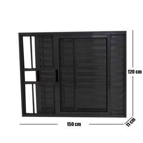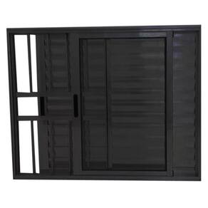 Janela de Alumínio Preto Veneziana 3 Folhas Linha 25 Com Grade- Bergame