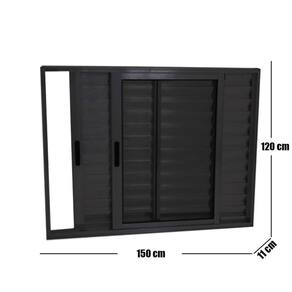 Janela de Alumínio Preto Veneziana 3 Folhas Linha 25 - Bergame