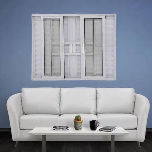 Janela de Alumínio Branco Veneziana 6 Folhas Linha 25 Com Grade Esquadrias Bergame - Bergame