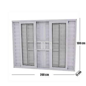 Janela Veneziana de Alumínio 6 Folhas 100 x 200cm Linha 25 com Grade Branco