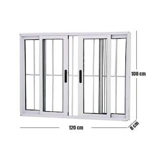 Janela Vitrô de Alumínio 4 Folhas 100 x 120cm Linha 25 Com Grade Branco
