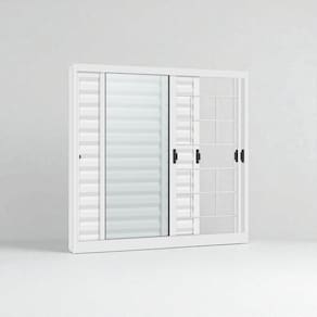 Modelo com 3 folhas 1 fixa , proporcionando ótima ventilação e praticidade
