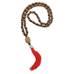 Descrição: Japamala é um rosário muito utilizado como marcador nas mantras. Com ele, a repetição de um mantra torna-se mais suave, leve e sem interrupções. Afinal, a preocupação com a contagem fica em suas mãos: são tradicionalmente 108, 54 ou 27 contas que giram em torno de uma conta maior, a representante da divindade evocada. Ao entoar mantras sempre com seu Japamala, você agrega energia espiritual nele, o que o torna um objeto sagrado que protege quem o usa. muitos adeptos utilizam o cordão no pescoço pois nele já está contida a energia da devoção depositada.
