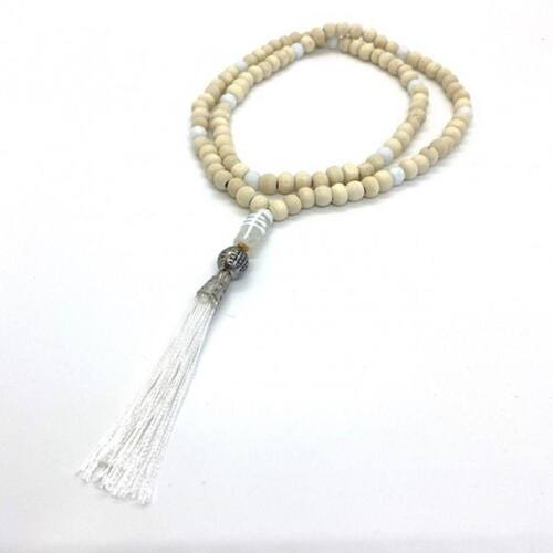 Japamala Oxalá 108 Contas Em Madeira Pompom Branco 8MM