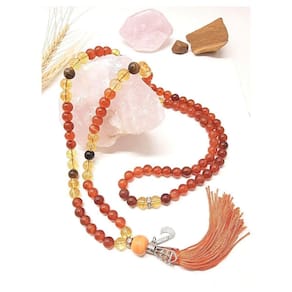 Japamala 108 contas em pedras naturais agata de fogo, citrino e olho de tigre