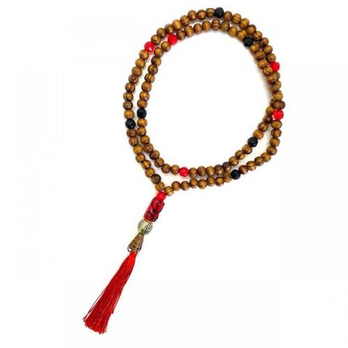 Japamala Pomba Gira 108 Contas em Madeira Pompom Vermelho 8MM