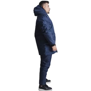 A Japona frigorífica da Maicol, com CA 10975, é confeccionada em nylon 330 com forro matelassê de manta acrílica de 150 g/m². O fechamento com botões de pressão metálicos e ajuste, junto com mangas longas e punho em malha, garantem vedação contra frio intenso.