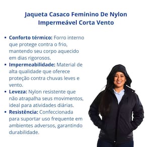 - Impermeabilidade: Material de alta qualidade que oferece proteção contra chuvas leves e vento.