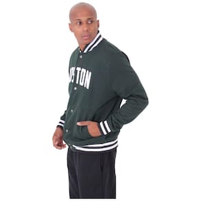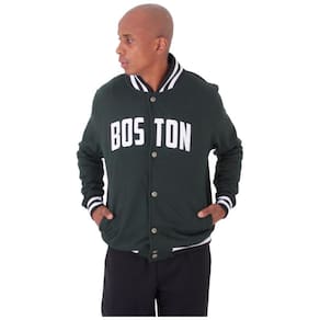 A jaqueta é confeccionada com materiais de alta qualidade, garantindo durabilidade e conforto ao usuário. O design apresenta detalhes cuidadosamente trabalhados, como o emblema "Boston" bordado no peito, que acrescenta um toque de autenticidade e pertencimento.