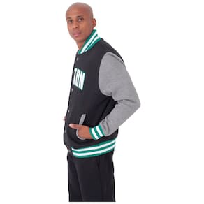 A jaqueta é confeccionada com materiais de alta qualidade, garantindo durabilidade e conforto ao usuário. O design apresenta detalhes cuidadosamente trabalhados, como o emblema "Boston" bordado no peito, que acrescenta um toque de autenticidade e pertencimento.