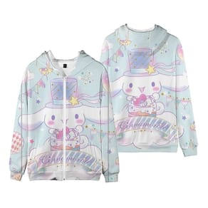 Moletom com capuz WANHONGYUE Cinnamoroll com zíper feminino de manga comprida, jaqueta de lã com capuz, suéteres femininos de desenho animado, cor/6, XXL