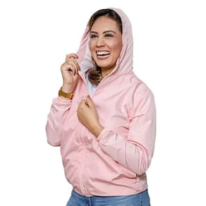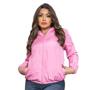 Jaqueta Corta Vento Feminino Forrada Impermeável com Bolsos e Touca Donna Martins - Rosa - P