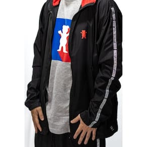 Jaqueta Corta Vento Grizzly Griptape Ribbon Com Capuz Preto/Vermelho - P - Jaqueta Corta Vento Grizzly Griptape Ribbon Com Capuz