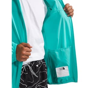 Materiais: WindWall de 78 g/m² — poliéster 100% reciclado com acabamento repelente à água durável sem PFC (DWR sem PFC)