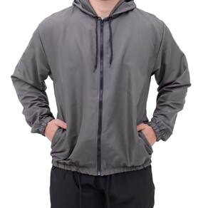 Jaqueta Corta Vento Masculina Microfibra Resistente à Agua Ziper e Capuz Motoqueiro Entregador - Grafite - P