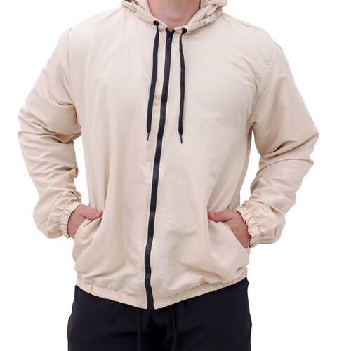 Jaqueta Corta Vento Masculina Microfibra Resistente à Agua Ziper e Capuz Motoqueiro Entregador - Bege - GG