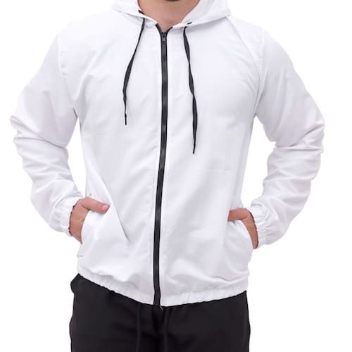 Jaqueta Corta Vento Masculina Microfibra Resistente à Agua Ziper e Capuz Motoqueiro Entregador - Branco - G1