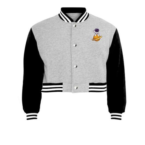 Jaqueta Cropped Moletom Astronauta Saturno Feminina Colegial - Preto - GG
