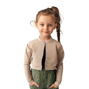 Jaqueta Cropped Moletom Infantil Lisa Estilo Casual Sem Bolsos - Bege - 8 anos