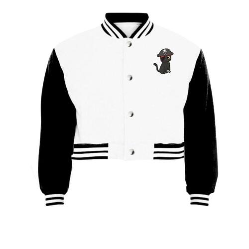 Jaqueta Cropped Moletom Pirata Gato Feminina Colegial - Branco - M