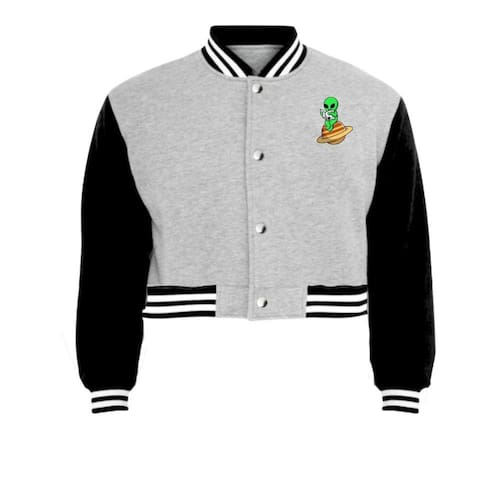 Jaqueta Cropped Moletom Saturno Et Feminina Colegial - Preto - P