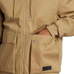 Jaqueta Dc Shoes com tecido repelente à água feito de algodão e poliéster reciclado, bolso embutido no peito, bolsos cargo e bolsos embutidos em ambos os lados, barra e punhos em tecido canelado e etiqueta de couro na parte inferior.
