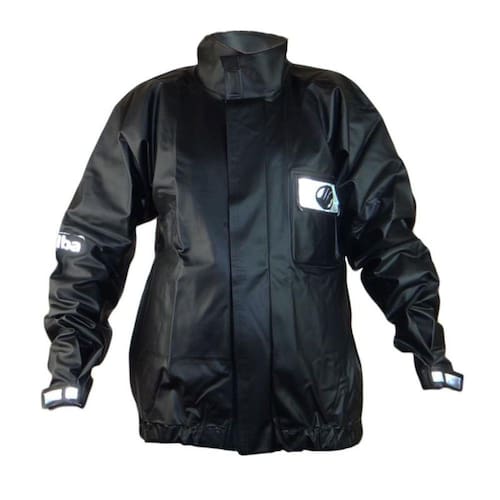 Esta Jaqueta impermeável modelo Europa fabricada pela Alba foi feita em PVC, e tem reforços interno e velcro para ajuste nas barras.