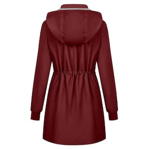 Casacos de chuva femininos impermeáveis com capuz - ?Design de capa de chuva?? Cordão ajustável oculto na cintura melhora a estética do corpo ? O design moderno do forro listrado vertical faz você parecer muito magra e chique ?Dois bolsos frontais com botões garantem que os itens não caiam. ?Punhos elásticos de manga comprida e design de capuz de gola alta melhoram a resistência ao vento ?Longo o suficiente para cobrir seu quadril. O capuz removível cria 2 visuais completamente diferentes e pode ser parcialmente limpo durante o processo de limpeza para prolongar sua vida útil - ?Material da capa de chuva?Revestimento 100% poliéster e forro 100% algodão. Impermeável / leve / secagem rápida / à prova de vento / respirável / impermeável / confortável de usar. Pode ser embalado em uma pequena bolsa compacta que é fácil de ser transportada em sua mochila diária e perfeita para viagens ou uso casual, e também reduz o consumo de energia no corpo. - ?Ocasiões?O tecido de poliéster tem uma densidade maior e pode ser mantido seco a qualquer momento. Não é facilmente penetrado por chuva leve ou neve, mas não fique muito tempo na chuva forte. Este sobretudo é adequado para uso diário, acampamento, caminhada, equitação, ciclismo, escalada, piquenique, caminhadas, viagens, passear com o cachorro, assistir a jogos de bola e outras atividades e esportes ao ar livre. - ?Cuidados com as capas de chuva femininas?Lavar à mão em baixa temperatura. Recomenda-se lavar a seco. Lavar à máquina facilmente danifica o tecido impermeável. - ?Aviso sobre o tamanho? Esta capa de chuva feminina é casual e grande o suficiente, fica grande para mulheres pequenas, escolha um tamanho abaixo se você for magra. O modelo na imagem tem 175 cm e 52 kg. O tamanho dela é pequeno.