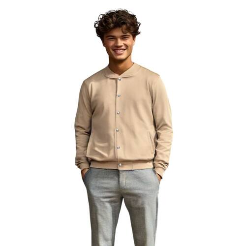 Jaqueta de Moletom Masculina Lisa com Bolsos Estilo Casual - Bege - GG