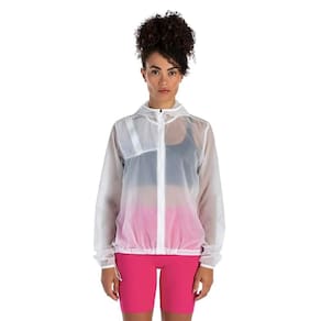 Para se proteger do vento sem abrir mão da leveza. Confeccionada em tecido de poliamida, a jaqueta possui a tecnologia de proteção ao vento, que bloqueia a passagem do vento e ajuda a manter o conforto térmico. Furos a laser em regiões estratégicas aumentam a ventilação e equilibram a temperatura do corpo. O capuz e as mangas com elástico, barra ajustável e zíper frontal com trava e acabamento zipper garage evitam atrito com a pele. Conta com bolso no ombro direito, funcional para objetos pequenos e para embalar. Logos refletivos garantem visibilidade em ambientes com pouca luz.