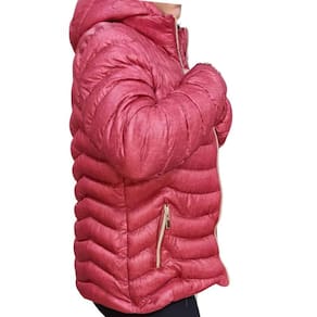O design moderno traz capuz com regulagem, zíper frontal, bolsos práticos e acabamento interno que garante maior proteção térmica. A cor cereja adiciona um toque vibrante e feminino ao visual, ideal para quem gosta de se destacar com elegância.