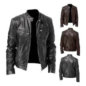 Jaqueta impermeável de couro de motocicleta para homens - Preto - 2XG