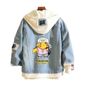 Jaqueta jeans estilo casual pikachu look bonito - Azul Turquesa - M + G