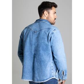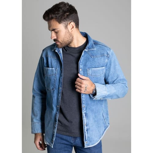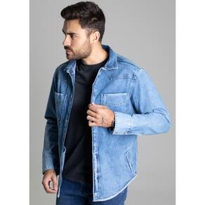 Jaqueta confeccionada em jeans. Modelagem versátil e atemporal. Comprimento longo Fechamento com botão metálico Dois bolsos frontais funcionais quadrado e dois laterais Barra simples Modelagem: Jaqueta Tecido: Jeans Tipo de lavagem: Azul Cor: Azul médio