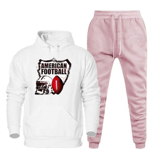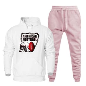 Jaqueta Moletom Canguru Capuz e Calça Cordao Ajustavel Flanelada Unissex Estampa Futebol Americano - Branco - P