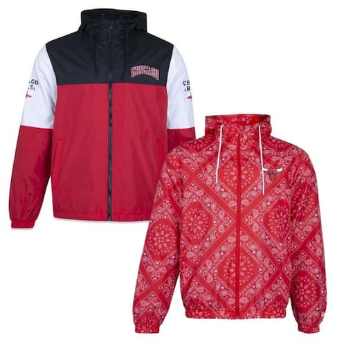 Jaqueta New Era Corta Vento Windbreaker NBA Chicago Bulls Street - Vermelho