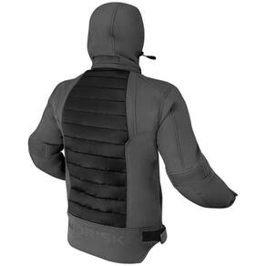 Protetores removíveis nos principais pontos de impacto Ajustes de punho e cintura em fecho aderente Capuz ajustável e removível