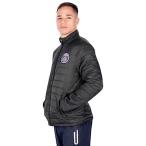 A Jaqueta PSG Logo Branco foi feita especialmente para aconchegar o torcedor do PSG nos dias mais frios. Confeccionada em tecido poliamida, forro e enchimento em poliéster, garantindo excelente maciez e conforto. Além disso, esta peça apresenta design com fechamento em zíper, dois bolsos frontais, forro interno, escudo do clube francês bordado na região do tórax e predominantemente na cor preta. Aproveite essa chance e adquira agora a sua Jaqueta Psg Logo Branco!