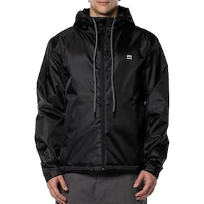 Jaqueta QuikSilver feita em fibras de poliéster com forro em microfibras de poliéster no corpo e capuz, bolsos laterais embutidos, capuz com regulador em cordão, barra reta/modelagem regular, trans aplicado no peito e barra costas e ziper invertido.